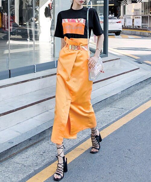 SK1711 シャインロングスリットスカート(ベルトset)
