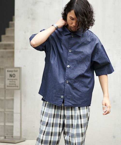 デカボタンが特徴的なビッグシルエットシャツが登場です。身幅にゆとりを持たせたトレンド感のあるビッグシルエット仕様。 シャツ感覚でお使い頂け、サイドにはスラッシュポケットが付いているのでアウターとしても◎ パーカーやロンTとレイヤードすることで春~秋の3シーズン対応可能です。 短丈なのでワイドパンツとのスタイリングもバランスがとりやすくオススメです。