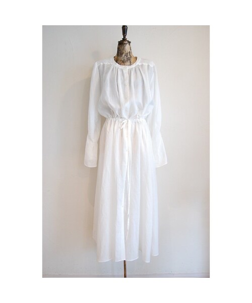 ブランド*hippiness カラー*ホワイト モデル身長*156cm 2018 summer collection *ramie four color collection* 通気性が高く吸水性や放湿性などにも優れた ラミー素材を使用。 軽やかで涼しさを感じられるため、 湿気の多いこれからの時期にぴったりの一枚。 たっぷりのギャザーでインパクトのあるワンピース。 フロントボタンなので、羽織りでも使えます。 後ろ前で着ることも出来ます。