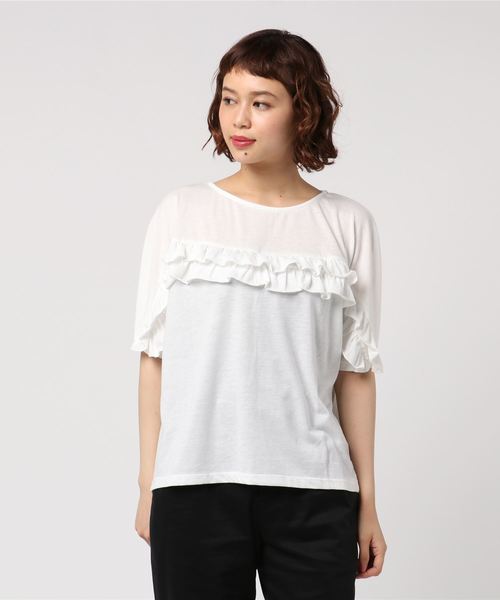 身頃から袖までに入ったフリルが大人可愛いプルオーバー。 ゆったりとした身頃とドロップショルダーがトレンドライクなシルエットで、1枚で着るだけでこなれ感のある着こなしになります。 デニムと合わせて甘辛ミックススタイルに仕上げるのがおすすめです。