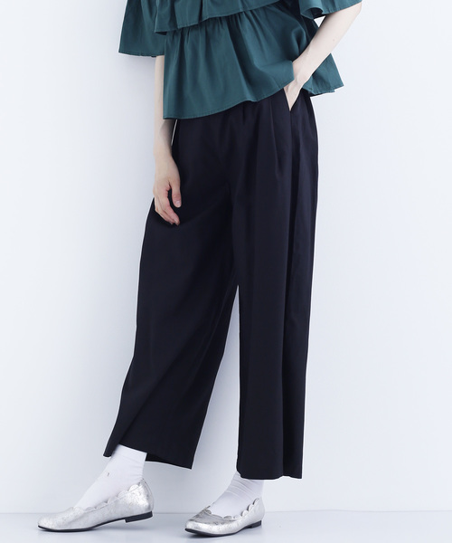 コットンとリネン素材が涼しげなパンツ。ハイウエストにリボンが女性らしさをプラス。 ワイドパンツのラフなシルエットがリラクシーなコーデに仕上げてくれます。 オフショルブラウスや、ビッグシルエットトップスをインして着用いただくのがおすすめです。 フロントサイドにポケットがあります。