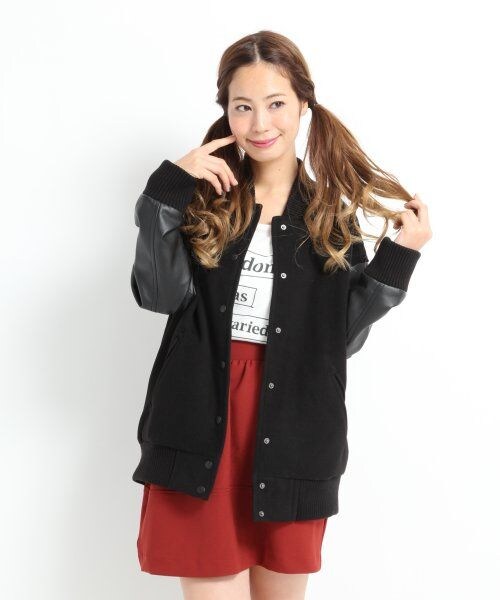 大人カッコイイスタジャンスタイルを☆ロング丈が新鮮なスタジャンは、袖がレザー調素材でデザイン性バツグン☆レザーがスタイリングのポイントになるのはもちろん、とことん辛口なスタジャンスタイルを楽しめるのが魅力的◎中々見ないロング丈がまた、ワンランク上のスタイルに決めてくれること間違いなしです☆大人なスタイルのアウターにはもちろん、フェミニンスタイルの外しにも良いですね♪只今、\1,000OFFクーポンがもらえるキャンペーンを開催中!!☆★詳しくはここをクリック★☆