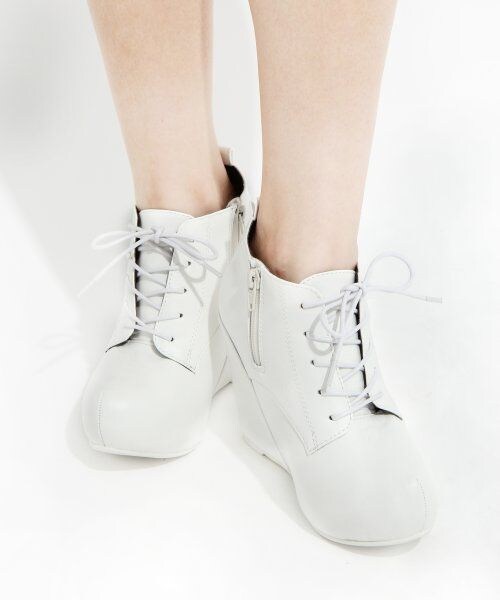 ウェッジソールのブーティ♪コーディネートを綺麗にしめてくれるレースアップタイプのブーティが登場!傾斜がゆるく安定感のあるウェッジソールで、長時間はいても疲れにくいところが嬉しい1足!靴下合わせがしやすく、足元を可愛く綺麗にまとめてくれます☆サイドにZIPの付いた、脱ぎ履きのしやすいところも魅力的☆ホワイトはフェイクレザー、ベージュはフェイクスエード、ブラックはそれぞれご用意がございます♪履けば履くほど味の出る素材感のブーティで、足元をお洒落に演出してみませんか?※商品の仕入れや発送の際に、シューズの箱が破損してしまう場合があります。商品自体に問題はありませんが、ご了承いただける方のみ御購入をお願い致します。