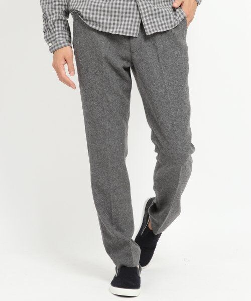 ウール素材を使用した、きれいなトラウザーパンツの登場☆足元にかけてテーパードがかかっており、シルエットが美しいです。センターに折り目が入っており、よりスタイルをきれいに見せてくれます。シャツ、ジャケットとの相性は抜群で足元にローファーなどを合わせて頂くとトラッドスタイルの完成です。また、カジュアルなスタイルのはずしアイテムとして使うとMIXスタイルで今期のオススメです!店舗へのお問い合わせは下記の商品名と品番をお伝えください。商品名:ウールトラウザー品番:530206