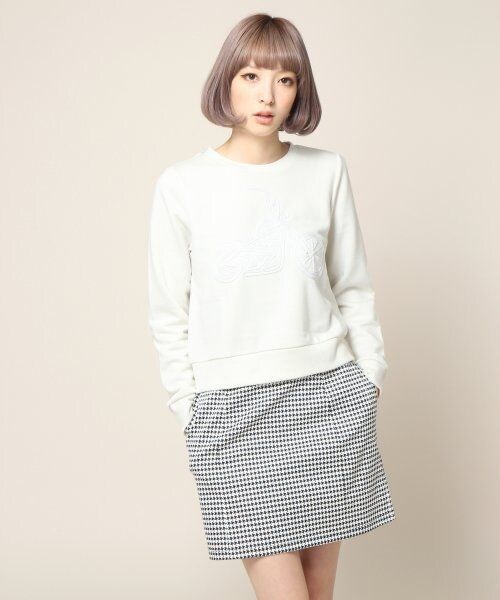 同色のテープを刺繍し、ロゴやモチーフを表現したスウェットアイテム。サイズはコンパクトなので、スカートのスタイリングに合います♪今年の気分のウラケアイテムはこれからの季節活躍間違いなしです。