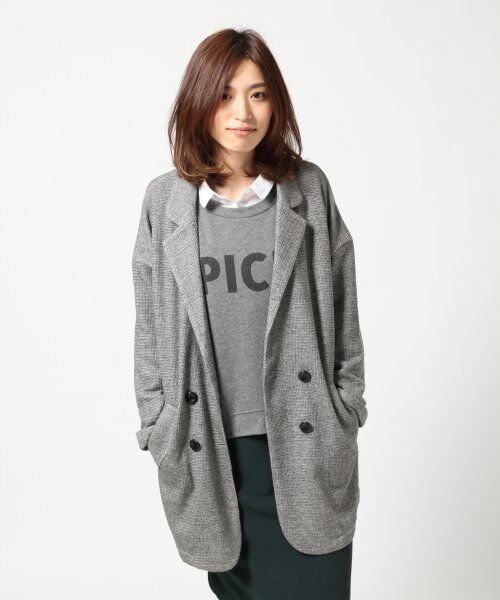 柔らかくゆったりとしたシルエットで着やすいテーラードジャケットは落ち感のある素材で着やすさ◎!なアイテム。カーディガン感覚で着られるので初秋のジャケットとしてオススメなアイテムです♪長め丈なので、細身のパンツはもちろん、トレンドのボックススカートとも相性抜群♪♪