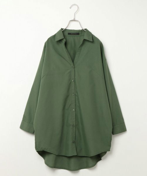 今年らしいスキッパー風のビッグシャツは、後ろ姿にご注目!! 背中部分に大胆にロゴを入れ、さらにラインを効かせたスポーティーな雰囲気です。 体のラインを拾わないビッグシルエット、後ろ長めの前後差丈も今っぽく着こなせるポイント♪ 襟を抜いたり、ベルトでウエストマークしたりとアレンジも楽しんで頂けます。 [クリーニング] 手洗い可ウェットクリーニング(W)洗濯の際はネットを使用してください