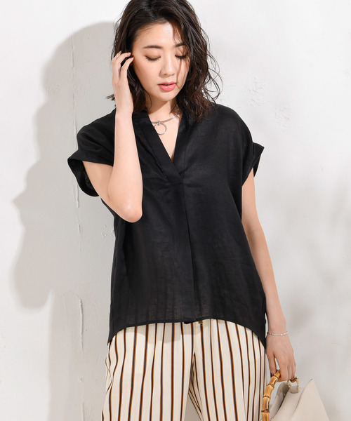 程よく空いたスキッパーシャツは、着丈が少し長めで前後差がついた形になっています。袖は、ドロップショルダーのターンバックになっていて肩先が隠れる袖丈になっています。麻・リネンは、通気性が良く吸水・吸湿性に優れていて、繊維が伸びにくく硬いので汗をかいても肌に張り付かず夏でも快適に過ごす事が出来ます。お洗濯も自宅で手洗いが可能になっており、汗をかきやすいこの時期にぴったりです。麻素材は、お洗濯すると縮みやすい素材ですが、一度、水を通して生地を安定させているので、お洗濯されても縮みにくく、シワにもなりにくいデイリーにご使用いただけます。