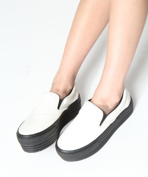カジュアルな印象の厚底スリッポン。合皮のブラックとヒョウ柄、どちらもコーディネイトにキリッとしたスパイスを与えてくれます。柔らかいソールで楽にはけるのに、底が高いので美脚にもなれちゃう優秀シューズです!フェミニンなスタイルのはずしアイテムとしてもオススメです。