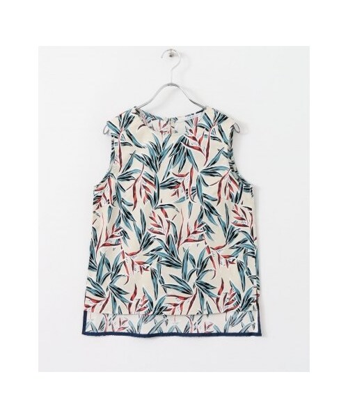 このアイテムは販売開始予定です ●販売予定時期: 2018年6月上旬※販売予定日は変更になる場合がございます。予めご了承ください。※画像の商品はサンプルです。実際の商品と商品名・価格・デザイン・カラー展開等記載内容は変更になる場合がございます。※予約・お取り寄せ・在庫確保は出来かねます。予めご了承ください。大人っぽさ漂うリゾートプリントが目を惹くトップス。夏にピッタリな柄やカラーリングは、コーデのポイントに◎シンプルなボトムを合わせるだけでサマになりますよ。綿を含んだ軽い肌触りは、これからの季節に嬉しい。同素材のリゾートプリントタイトスカート、リゾートプリントバンダナもございます。※透け感あり