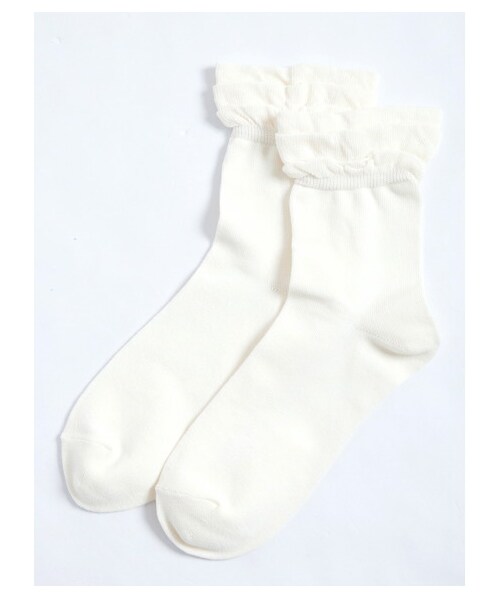 トップが3段フリルが女性らしい印象のソックスです。柔らかな肌触りの綿混素材を使用しています。どんなコーディネートにも合わせやすいシンプルなフリルソックスです。ショートブーツやパンプスと合わせたスタイルがお勧めです。【雑誌掲載情報】soup2013年11月号掲載