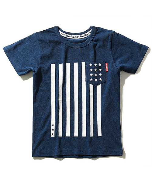 絶妙な色合いのカットデニムを使用した半袖Tシャツ。星条旗モチーフのプリントが目を惹くデザイン。綿100%だから肌触り・通気性の良いさらっとした着心地で汗の吸収・発散性に優れており型崩れしにくいのもポイント。■ディティール■伸縮性:あり・背面はすべて無地