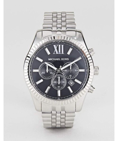 Watch by Michael Kors, Let your wrist do the talking, Stainless steel strap and case, Three hand movement, Sub-dial, chronograph design, Date window, Dash and Roman numeral indices, Single crown to side, Twin pushers, Double folding fastening, Water resistant. Premium lifestyle brand Michael Kors offers a selection of luxury accessories and wardrobe staples. Gold-plated chronograph watches and acetate-frame sunglasses are finished with carefully considered details, while crisp cotton shirts and silk ties help take your dress code up a level.