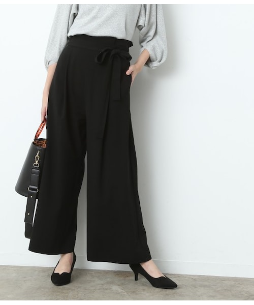 はくだけでスラッとした脚長スタイルがメイクできるハイウエストパンツ。存在感を放つワイドシルエットもポイントで、今っぽさがスタイリングをこなれた雰囲気に導きます。フロントタック入りでおなかまわりにやや余裕があり、ウエストはバックゴム仕様でラクラクなはき心地。Dカンベルトのアクセントで華奢見せ効果もバツグンです。トップスインしてウエストを強調したスタイルがおすすめ。