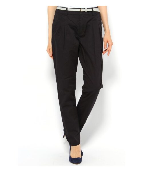 ☆2013F/W☆毎シーズンご好評いただいている、ベルト付のテーパードパンツ。シンプルなデザインでオールシーズンお使いいただけます。すっきりとしたシルエットはスニーカーやフラットシューズを合わせてもきれいにまとまりますよ。モデルサイズ:身長:162.5cmバスト:78cmウエスト:58cmヒップ:84cm着用サイズ:40