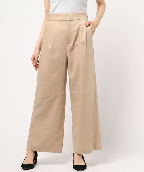 シンプルなデザインで合わせやすさが魅力のワイドパンツ。 ウエストは両サイドにゴムを入れているので、ストレスフリーな履き心地になっています。 柔らかな素材で、ボリューム感のあるシルエットながらすっきりと魅せてくれるのも嬉しいポイント。 大人カジュアルスタイルからオフィスシーンまで楽しめる1枚です。