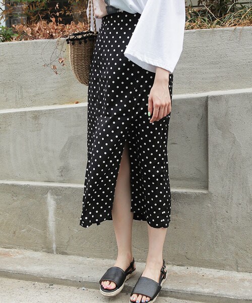 深めのスリット入りのセクシーなロングスカート! 今年流行りのドット柄でコーデをトレンディにまとめてくれる♪ シンプルなロゴTシャツやカラートップスとのマッチがおすすめ! ※WEARに記載してある金額と、DHOLIC通販サイトに記載してある金額にシステム都合上、稀に誤差が生じます。正しい金額はDHOLIC通販サイトに記載された金額です。