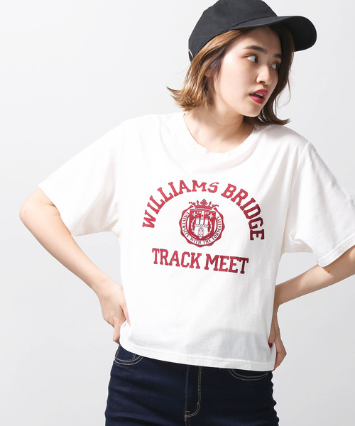 アーチロゴが着こなしのワンポイントに フロントにロゴをあしらったTシャツ。 アーチデザインが、手軽に着こなしのアクセントになります。 柔らかな生地感でリラックスして快適に着用頂けます。 ショート丈かつ、程よくゆとりのあるシルエットでフェミニンな雰囲気を着こなしに演出してくれるひと品。 一枚で着用頂くのは勿論、インナーとしてのアクセント使いもオススメ。 今季はベレー帽やスニーカーなど、小物で遊びを効かせたコーディネートもオススメです。