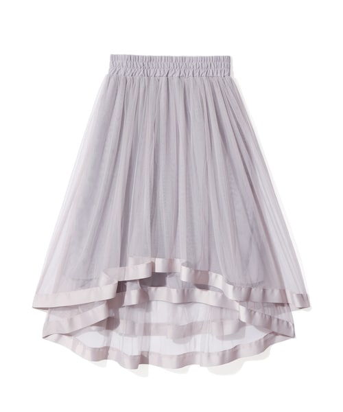 乙女心を刺激するドラマティックなチュールスカート。 動きのあるアシンメトリーな裾にグログランの縁取りを施し、レディなニュアンスをプラス。 ふんわりした丈差のあるチュールを重ね、足元軽快に仕上げた装いに。 ★裏地付きです。 ★ウエストゴム入りです。