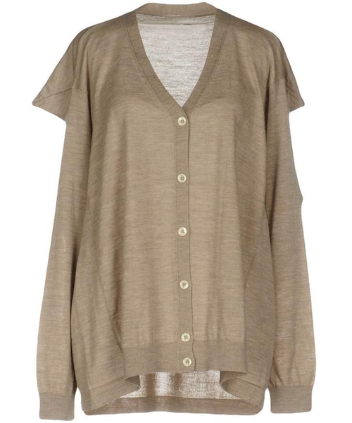 MAISON MARGIELA Cardigans. contains non-textile parts of animal origin, knitted, melange effect, lightweight sweater, solid color, v-neckline, long sleeves, button closing, front closure, no pockets, no appliqués, large sized. 100% Wool
