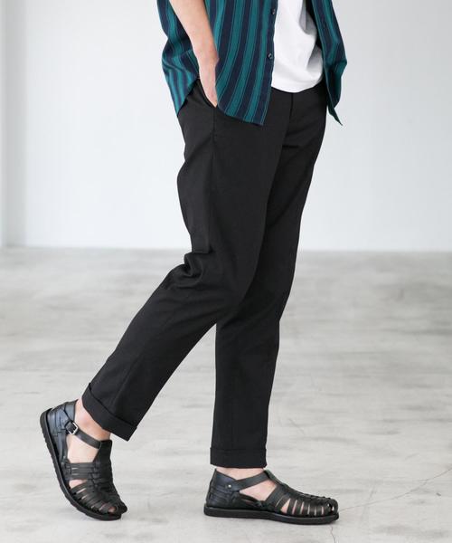 ■ダブルの裾で仕上げた上品なパンツドライタッチなポリエステルのツイル地の生地を使用した9分丈パンツ。裾はアンクル丈のダブルで仕上げ、上品な雰囲気にまとめたデザインです。シルエットはすっきりとキレイに仕上げたアイテム。キレイ目なスタイリングにはもちろん、カジュアルアイテムと合わせたカジュアルダウンなスタイリングにも対応する汎用性のある1本です。レザーシューズやレザーサンダルと合わせて、大人ごなしなスタイリングに仕上げるといい感じ。ブラックのメイン画像のモデル:身長179 B82 W72 H91 着用サイズ:Mベージュのメイン画像のモデル:身長179 B82 W72 H91 着用サイズ:Mネイビーのメイン画像のモデル:身長179 B82 W72 H91 着用サイズ:M商品の詳細ディテール紹介画像のモデル:身長180 B88 W70 H90 着用サイズ:M※画像の商品はサンプルの為、実際の商品と仕様・加工が若干異なる場合がございます。また、記載のサイズ・素材が若干変更となる事がございます。※照明の関係により、実際よりもやや明るく見える場合がございます。またパソコンなどの環境により、若干製品と画像のカラーが異なる場合もございます。予めご了承ください。店舗へお問い合わせの際は、全国のgreen label relaxing 各店舗まで下記の品名/品番をお申し付け下さい。品名:NM ポリエステルツイル Wヘムナロー9L 品番:3214-155-2586