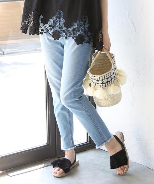 ソフトな風合いで穿き心地抜群のフレイドヘムのデニムパンツ細身のシルエットが美しいベーシックな5ポケットジーンズ。ヒゲのラインが色濃く刻まれたヴィンテージライクなカラーリングが魅力です。裾のラフなカットオフ仕上げもポイント。程よいストレッチ感とバックウエストゴムデザインで穿き心地抜群です。足首にヌケをプラスするハンパ丈が軽快な印象をプラス。【オススメスタイリング】ポインテッドトゥや、 エスパドリーユ、ストラップサンダルetc...フェミニンなシューズも甘くなりすぎずに決まるのもハンサムなルックスならでは。スポーティーなトートバッグやデイパックからオリエンタルなかごバッグや、プラかごバッグまで幅広いアイテムとマッチ。#スキニーパンツ #デニムコーデ #カジュアルスタイリング #休日コーデ 【お取り扱い注意事項】・インディゴ染料使用製品です。・つけ置き洗い・濡れたまま(雨や汗で湿った状態)の放置はお避けくださいませ。また、単品でお洗濯してくださいませ。・摩擦により淡い色のバッグやベルト等に色移りする場合がございますのでご注意くださいませ。※実店舗と発売時期が異なることがございます。あらかじめ御了承下さい。※商品サンプルにて撮影しております。若干の仕様変更が生じる場合がございます。※撮影場所やお使いのモニター環境により若干お色味が異なる場合がございます。店舗へお問い合わせの際は、全国のコーエン各店舗まで下記の品名/品番をお申し付け下さい。品名:MC STRC SLIM CROPPED DNM 品番:7640-600-8033