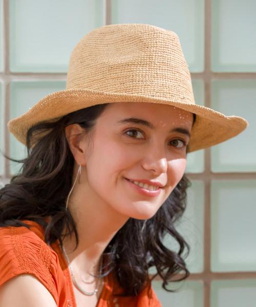 ★細かなコマ編み魅力的なラフィアハット★手編みの細かいコマ編み作りが、カジュアルになり過ぎず、大人っぽく着用できる中折れハットをご用意しました!細めのグログランリボンは、その日の気分で取り外し可能。絶妙なゆったりサイズでヘアスタイルも崩さない&嬉しい小顔効果♪ツバの淵に芯を入れているので、ブリムシルエットをきれいにキープできます。幅広いスタイリングと相性のよい、きちんと感のある仕上がりも◎。店舗へお問い合わせの際は、全国のgreen label relaxing 各店舗まで下記の品名/品番をお申し付け下さい。 品名:NFC ラフィアツバヒロナカオレHAT 品番:3638-699-0307