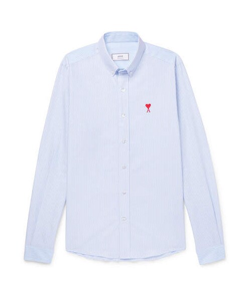 Any AMI fan will instantly recognise the embroidered heart emblem on this shirt – it's a brand signature and the way Creative Director Mr Alexandre Mattiussi signs off letters to friends. This piece is made from blue and white striped cotton Oxford and topped with a neat button-down collar. Shown here with AMI jeans, AMI jacket, A.P.C. sneakers. - - Blue and white cotton Oxford - Button-down collar, buttoned cuffs, embroidered designer emblem - Button fastenings - 100% cotton - Machine wash - Mother-of-pearl: India - Imported