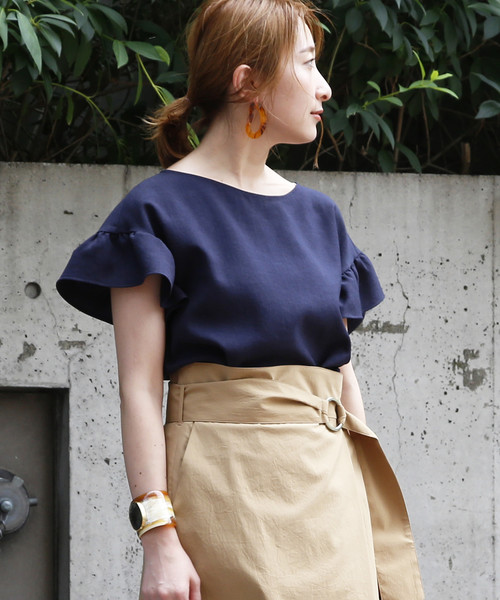 麻のような風合いの上品見えブラウスポリエステル100%で、ご自宅でお手入れ出来るのに、麻のように見える上品な雰囲気のブラウスです。シワになりにくく、ドライタッチで涼やかな素材でもあるので、暑い季節に活躍しそう。大きすぎないフリルが、適度な甘さをプラスしています。後ろ側がすこし長めになっているので、前だけインしてもバランスよく、腰回りをすっきり見せてくれます。