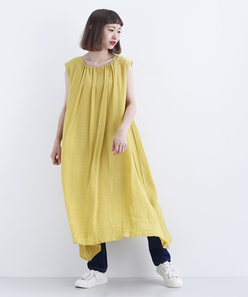 シーズンムードを盛り上げてくれる涼しげな生地感が魅力的なワンピース。程よいフレアシルエットに襟もとに寄せられたギャザーがふわっと感を取り入れてくれて、印象的です。 そのまま着用いただくのはもちろんパンツやスカートと着合せていただくのもトレンドライクでおすすめです。