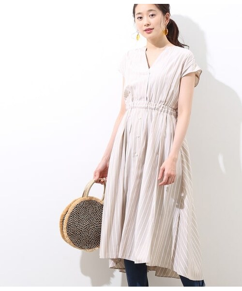 テンセル混で落ち感のある素材を使用しているので涼し気な印象に。夏らしい爽やかなストライプ2色と女性らしい無地のライラックの展開です。こちらは爽やかなストライプ柄。裾は前後差のついたアシメトリーヘムと程よいボリューム感は歩いたときのシルエットを綺麗にみせてくれます。無地タイプはGWE2823になります。※画像の商品はサンプルです。 実際の商品と仕様、加工、サイズが若干異なる場合がございます。ROPE'の商品は、ROPE'実店舗のみの取り扱いになります。また、ROP