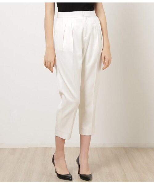 柔らかな素材を使用したタックパンツです。程よく腰回りにゆとりがあり、裾に向かって細くなっているのですっきりとした印象に。ハイウエストが今年らしいバランスに仕上げてくれます。定番のホワイトのほか、爽やかなサックスブルー、カーキを展開しているのでコーデの差し色として新鮮です。