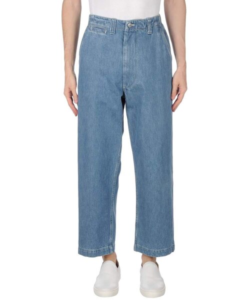 E. TAUTZ Jeans. denim, faded effect, no appliqués, solid color, dark wash, high waisted, front closure, button, zip, multipockets, straight leg. 100% Cotton
