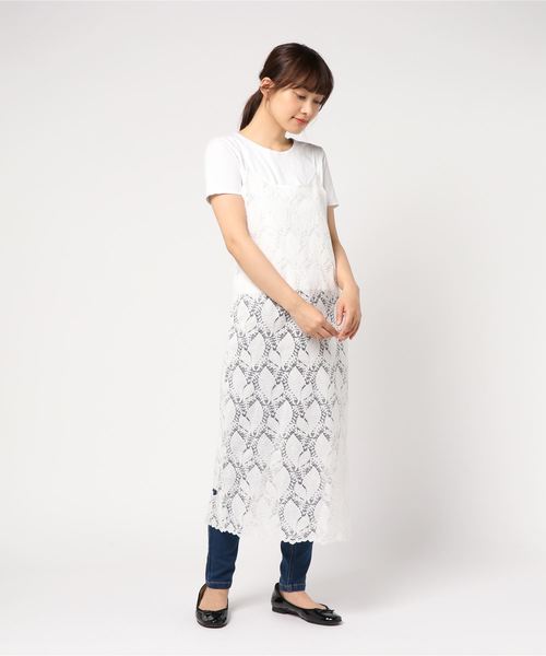 トレンドのレースが大人っぽいリーフ模様のキャミワンピースです。 膝が隠れるくらいのロング丈がスラッとしたラインを叶え、品のある女性を演出。 スリットが入って動きやすく、ジーンズと合わせたカジュアルスタイルもお勧め。 シンプルなTシャツやキャミソールを重ねるなど、幅広いレイヤードスタイルが楽しめます。