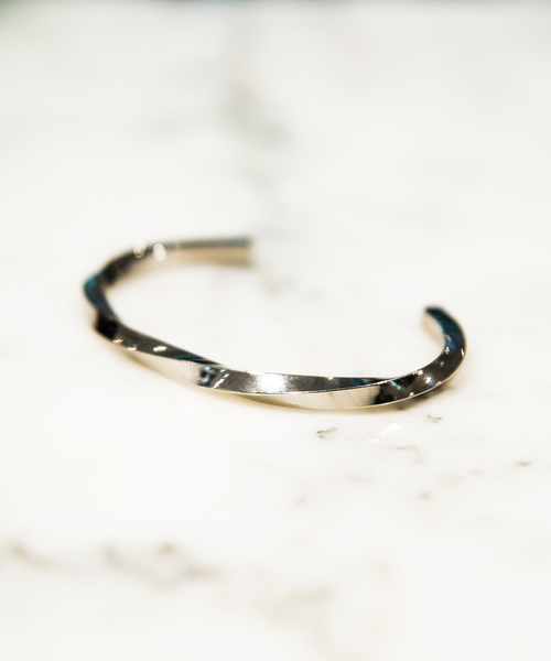 【NUMBER (N)INE(ナンバーナイン)】WEBのみでしか買うことができないプレミアムアイテム真鍮素材のシンプルで洗練されたバングルコレクションが新登場ーデザイン・シルエットーシンプルで使いまわしやすい真鍮バングルシリーズが新たにリリース。四角形のスクエア型をねじりデザインに落とし込んだ洗練されたデザイン。裏側にはNUMBER (N)INEのブランドロゴの刻印を施しています。太すぎず細すぎない絶妙なサイズ感で、どのような服装にも合わせやすいです。1本だけでの着用でも存在感があり、他のバングルなどと重ね付けをしてもバランスよく見せることが出来ます。ビッグシルエットのTシャツやオープンカラーシャツなどのトレンドアイテムとはもちろん、セットアップやこぎれいなアイテムのアクセントとしても重宝するアイテムです。ー素材の特徴ー上質な真鍮素材をベースとして使用しています。少し磨きをかけ程よい光沢を出したシルバーカラーは一番合わせやすいマストカラー。輝きすぎない程よい質感がいやらしくなくさりげなく主張することができます。真鍮素材なので腕の細さによって曲げることでサイズの調整が出来ます。シンプルでベーシックなデザインは男女問わずにご使用いただける商品です。