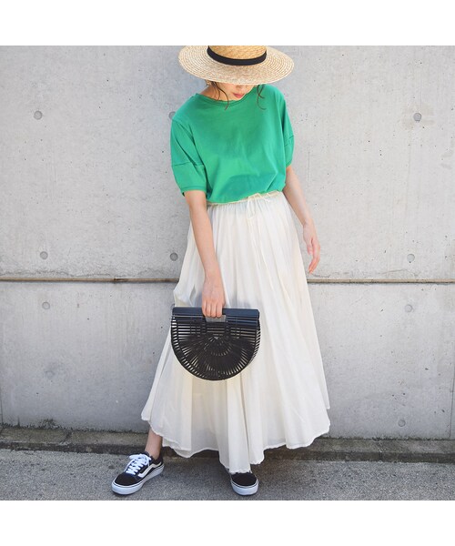 ※グリーン→完売 ーーーーーーーーーーーーーーーーーーーーーー コクーンシルエットが、通常のTシャツとは異なり一味違った印象のデザインのトップスです。 少ししっかりとしたカットソーを使用し、詰まった襟ぐりできちんと見え、一枚着でサマになるアイテムです。 グリーンカラーはバイヤーおススメ☆ デニムPTとの愛称抜群のカラー展開です。 ーーーーーーーーーーーーーーーーーーーーー 【セレクト】HAL 【COLOR】ホワイト・グリーン 【SIZE】Fサイズ(M-Lサイズ記載) 平置き(㎝) 着丈 55 バスト 49 肩幅 42 袖丈 25 裾幅 52 【素材】綿 100% ーーーーーーーーーーーーーーーーーーーーーー ※こちらの商品は【メール便】にてご配送となります。 (他の商品と一緒にご購入の際は、商品に寄って【宅配便】の配送料となります。)