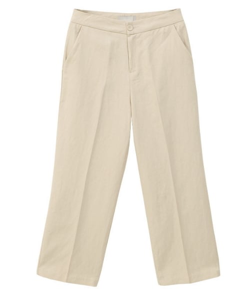 ナチュラルな着心地のワイドなクロップドスラックスです。 清涼感のあるコットンxリネン生地が快適な履き心地を叶えてくれます。 ゆったりとしたフィット感で楽にレッグラインを包むワイドスラックス。 足首がほっそり見えるクロップド丈で、アンクルストラップシューズと相性抜群。