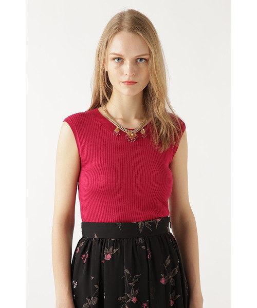 滑らかな着心地のシルク70%を使用したノースリーブトップス。太めのリブに、シンプルなデザインは、フィット感のあるシルエットで着やすいです。後ろのボタンがアクセントになっていますが、スカートやパンツはもちろん、ジャンスカなどのインにしたレイヤードもしやすく、夏に着やすいシンプルなカラーアイテムです。