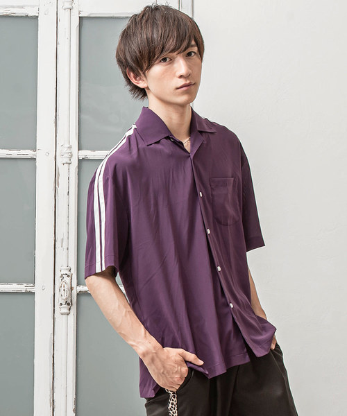 新作【シルクポリオープンカラーシャツ】 この夏マストのオープンカラーシャツに、トレンドのビッグシルエットを組み合わせたデザイン。 フロントを太いストライプで切り替えたデザインと袖に細いライン2本を施したデザインの2パターンをご用意しており、コーディネートの幅を広げてくれます。 生地にはサラッと滑らかな肌触りが特徴の「シルクポリ」を使用。 独特な光沢感が落ち着きのある大人な雰囲気を演出してくれます! ============================= 【お買い物をもっと便利に楽しく♪】 ■商品のお気に入り登録をすると・・・ 完売カラー・サイズの再入荷通知や、ラスト1点の通知、 お得なセール情報も受け取ることができます! ■ブランドのお気に入り登録をすると・・・ 新商品や再入荷のお知らせなどいち早くブランドの 最新情報を受け取ることができますのでご登録をオススメします!