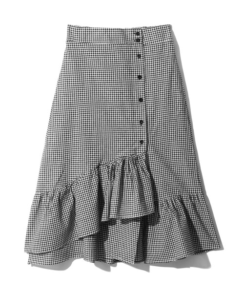 ギンガムチェックとイレヘムフリルで女の子らしさ満点のスカート。 ラップデザインが今年のトレンドもしっかりキャッチ。 コーデの主役になれちゃうキュートな一枚。 ★裁断の関係で、柄の出方が写真と多少異なる場合があります。 ★裏地付きです。 ★バックウエストゴム入りです。