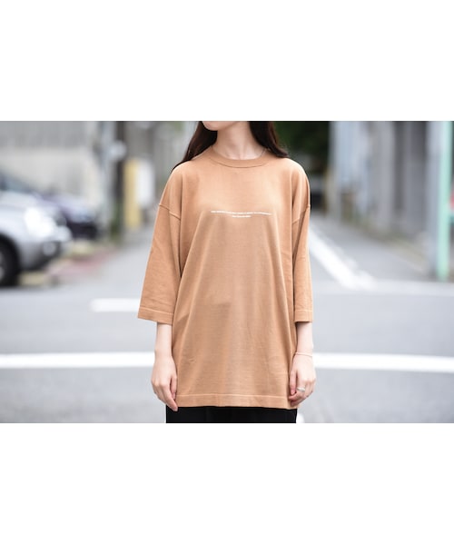 過去シーズンから毎シーズン欠かさずcrepusculeとのコラボレーションによって作られてきたメッセージニット。 今回は、シルクコットンのサマーニット。 一番の特徴はフロントにプリントで施されたメッセージ。 テキストには仏画家 ジャン・フランソワ・ミレーの言葉。 ""ジャガイモのほうがザクロよりも劣っているなんて、誰かが断定できるというのか"" を意味しております。 素材には上質な強撚綿シルクを使用。 肌触りと着心地の良さ両方兼ね備えているため、夏場に快適に過ごせます。 サイズ感は程よいゆったりとしたシルエット。 ユニセックス展開です。 サイズMは、ほとんどの方が着用可能。