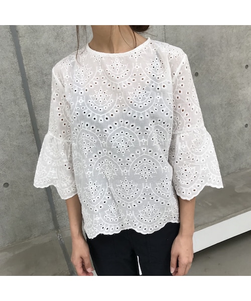 大人フェミニンな清潔感漂うパンチングブラウスです。 裾のフリルデザインとラッフルスリーブで女性らしいシルエットに仕上げました♪ 長すぎない着丈なのでラフにデニム合わせや、ボトムINしてトップスを短くするのもおすすめです☆ 可愛さがぎゅっとつまったトレンドブラウスです。 ※モデル身長:161㎝ ◆クリックポストにて代引きをお選び頂いた方は、390円プラスさせていただき、ゆうパックの代引きにて発送させていただきますのでご了承下さい。 ◆カラー ホワイト ◆サイズ 着丈62㎝ 身幅50㎝ ※多少の誤差は予めご了承下さい。 ◆素材 コットン ※一点、一点、多少柄配置が異なりますのでご了承下さい。
