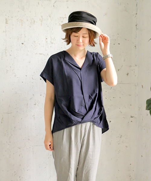 さらっとしていてとろみあるブラウスはどんなシーズンも着たいアイテム。ポリエステルを芯にレーヨンをカバーリングしたサイロフィルと呼ばれる糸を使用していて、滑らかな肌触りと落ち感はそのままに、ポリエステルの芯でしわになりにくくイージーケア。レーヨン混なのでヒンヤリ効果もある嬉しい素材です。洗濯後もお手入れもしやすく、梅雨時にもデイリーに着まわせます。[クリーニング]手洗い可ドライクリーニング可(F)ウェットクリーニング(W)