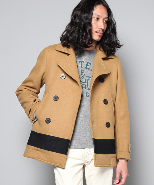 ウエストを程よくシェイプさせ、すっきりとしたシルエットのPコートです。 特徴的な大きめの釦にはHORSESHOE WOMANに星柄をあしらったオリジナルの釦を使用しています。