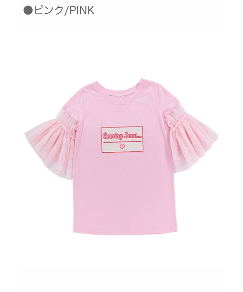 ♡Bobon21 2018Summer New Collection♡ 袖がインパクトのあるベルスリーブデザイン チュールを使ってるのでボリュームのある仕上がり Tシャツはcoming soon…の文字がプリントされています アクセントの効いたデザインでワンランク上のコーデに仕上げてくれるよ カラーは、白とピンクの2色展開