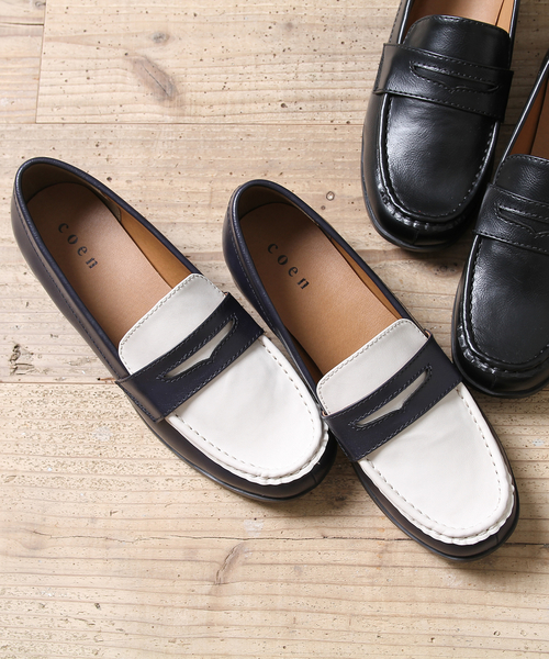 クラシカルムードが溢れるローファーシンプルなデザインとすっきりシルエットのローファー。足に馴染む素材は素足でも取り入れて頂きたい一足に。サッと履くだけで足元をお洒落にランクアップしてくれます。オンオフ兼用で使えるカラー:ブラックと、配色がスタイリングのアクセントになるカラー:ホワイト×ネイビーの2種類での提案です。【オススメスタイリング】シュっとしたシルエットはスタイリッシュな印象なので、スタリングに引き締め効果を与えてくれます。いつもはパンプスやバレエシューズの足元に変化をつけるとさりげなくマニッシュで大人な雰囲気をプラスし新鮮です。#ペニーローファー#通勤 #マニッシュ #ブラック#モノトーン※実店舗と発売時期が異なることがございます。あらかじめ御了承下さい。※商品サンプルにて撮影しております。若干の仕様変更が生じる場合がございます。※撮影場所やお使いのモニター環境により若干お色味が異なる場合がございます。店舗へお問い合わせの際は、全国のコーエン各店舗まで下記の品名/品番をお申し付け下さい。品名:EC penny loafers 品番:7682-608-8058