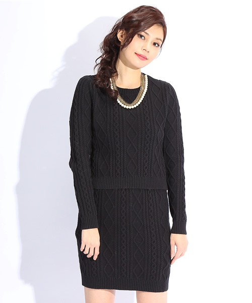 ケーブル編みで仕上げたニットプルオーバーです。クロップド丈のトップスは今シーズンのマストアイテム!編地を活かしたシンプルなデザインで、着回しの効く一枚です。 タイトスカートを合わせたスマートな着こなしや、ボリュームのあるボトムとの相性も抜群です。 ≪オフホワイト≫ Model : H165 B80 W59 H85 (cm) Size : ONE SIZE ≪ブラック≫ Model : H170 B78 W58 H86 (cm) Size : ONE SIZE ※同素材・同柄のタイトスカートと合わせて、セットアップとしての着用も可能です。 ※詳細は参考カラーです。 店舗へお問い合わせの際は下記品番をお伝えください。 品番:63-15-0149-690