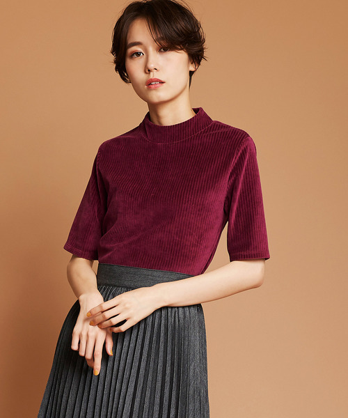 暖かみのあるコーデュロイ素材で秋コーデにコーデュロイ見えの素材がぬくもりのあるスタンドネックカットソー。1点投入するだけで秋スタイルへのシフトチェンジできるアイテム。ソフトに仕上げた素材は柔らかい着心地とふんわりとした風合いが特徴。またボトムスを選ばないくすんだカラーリングもポイント。スカートのフェミニンスタイルや、デニムのカジュアルスタイルなど秋口の着回しに効く1枚。【洗濯表示について】 40℃を限度とし、手洗いによる洗濯処理 漂白処理はできません タンブル乾燥禁止 日陰でのつり干し乾燥がよい 底面温度110℃を限度とし、スチームなしでアイロン仕上げ 石油系溶剤(蒸留温度150℃~210℃引火点38℃~)でのドライクリーニング処理ができる:弱い処理 ウエットクリーニング処理ができる:非常に弱い処理※画像の商品はサンプルです。実際の商品と色味、仕様、加工、サイズ、素材等が若干異なる場合がございます。※アイテムサイズは商品サンプルを採寸しているため、実際の商品と多少の誤差が生じる場合がございます。※末永く愛用頂く為に、アテンションタグ・洗濯ネームを必ずご確認の上、着用又はお取り扱い下さい。《お気に入り登録》でお得な情報をお届け・「商品のお気に入り登録」で再入荷通知や、ラスト1点の通知、セール通知も受け取ることができます。・「ブランドのお気に入り登録」で新商品や再入荷など、お得な情報を受け取ることができます。