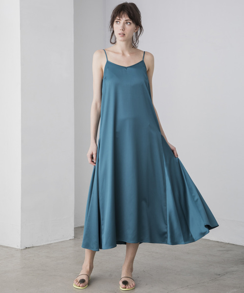 ハリのあるサテン素材を使用したキャミワンピース。 肩紐はアジャスターで調節ができるので胸開きや着丈は調節がききます。 美しいフレアシルエットが出るようなパネルデザインになっています。 ※商品画像はサンプルのため、色味やサイズ等の仕様に変更がある場合がございますので、予めご了承ください。