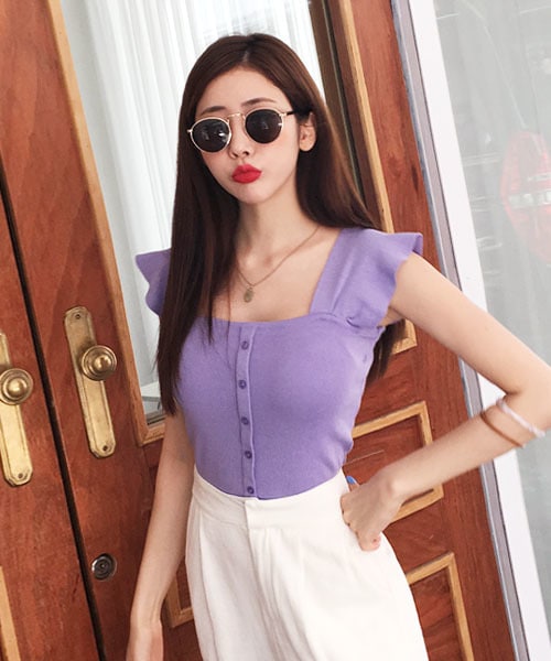 ショルダーラッフルでガーリーに仕上がったサマーニット♡ 短め丈で腰回りをすっきりと見せてくれる!ハイウエストのボトムスと相性バツグン◎ ※WEARに記載してある金額と、DHOLIC通販サイトに記載してある金額にシステム都合上、稀に誤差が生じます。正しい金額はDHOLIC通販サイトに記載された金額です。